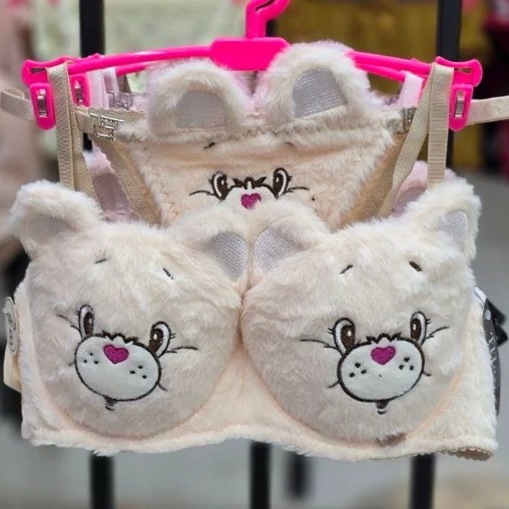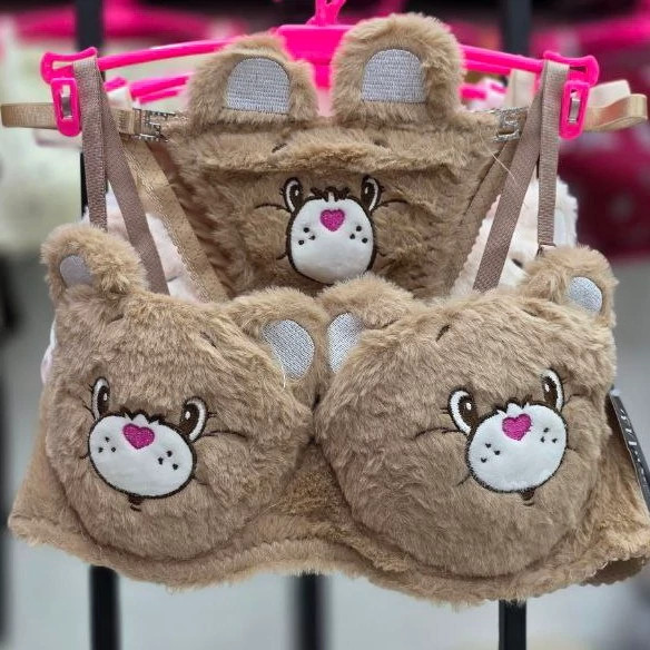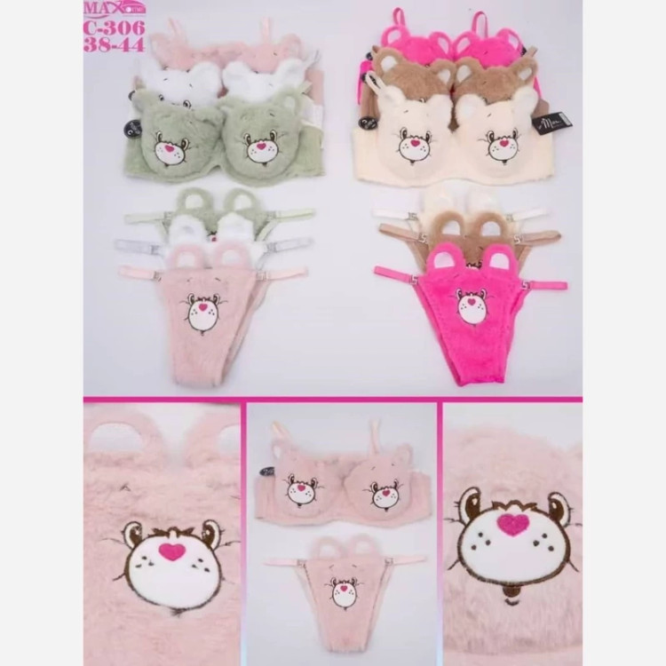 ست لباس زیر فانتزی تدی عروسکی گوش دار پشمالویی شورت و سوتین ابری جکدار خارجی کیفیت عالی