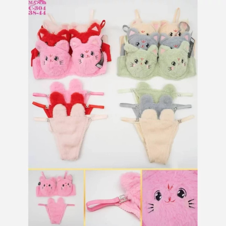 ست لباس زیر فانتزی عروسکی پشمالویی شورت و سوتین ابری جکدار خارجی کیفیت عالی..
